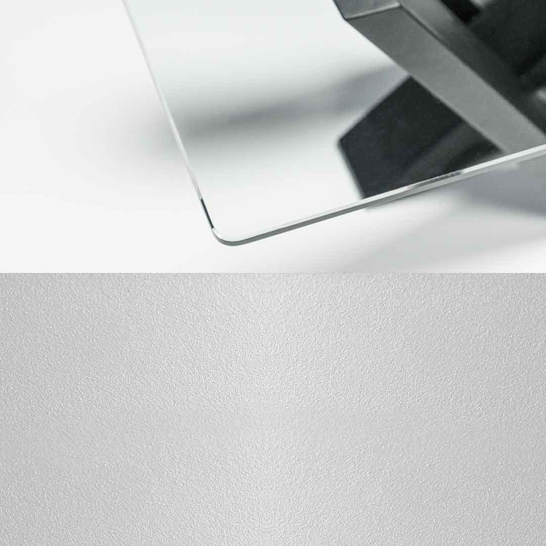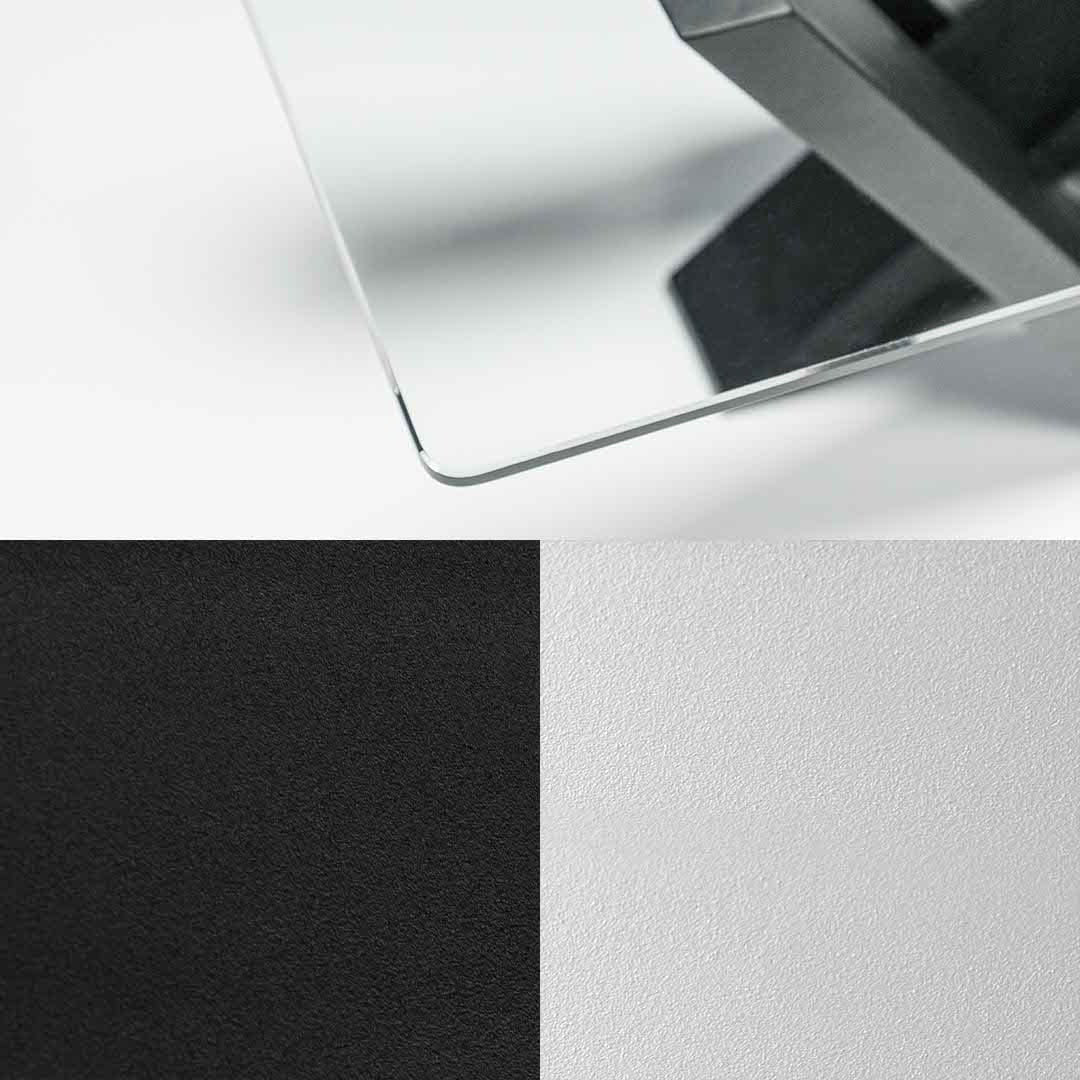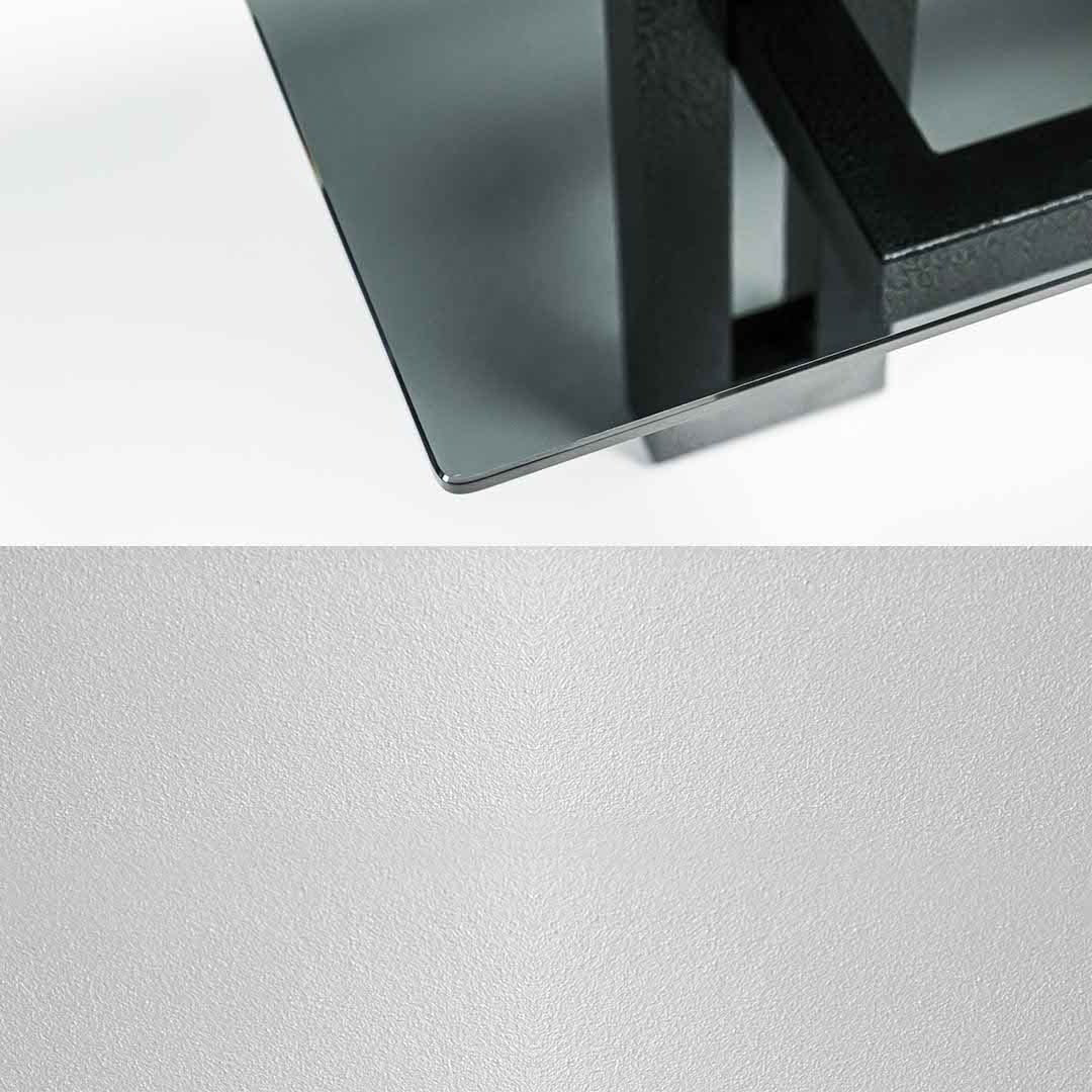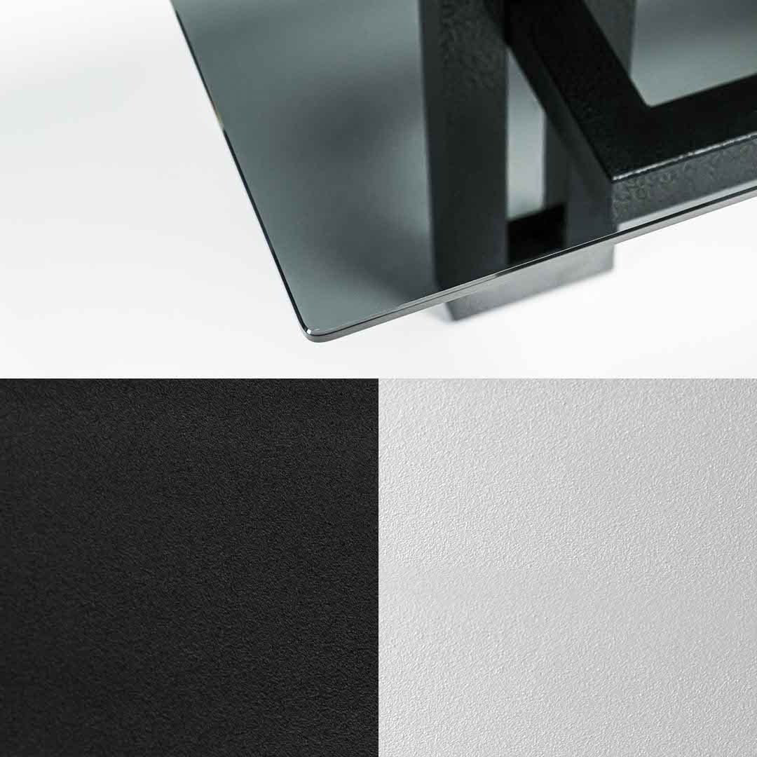 Acabada con pintura microtexturada en tonos gris o negro, y complementada con un vidrio templado circular, esta mesa combina estilo y funcionalidad en una sola pieza.