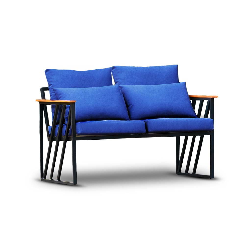 Equipado con apoyabrazos de madera de cedro tratados para resistir las inclemencias del clima, este sillón ofrece una experiencia superior de confort y estilo. Su estructura metálica pintada en polvo y sus telas impermeables, resistentes a los rayos UV, garantizan una larga vida útil y un desempeño impecable en exteriores.