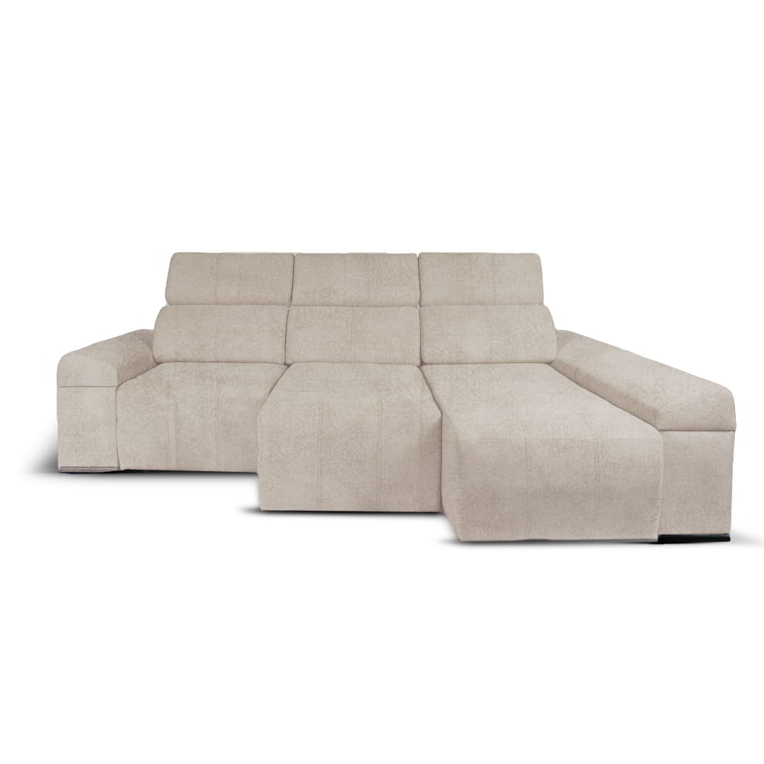 El sofá Freya 3 Cuerpos con chaise longue ofrece diseño contemporáneo y versatilidad para tu espacio. Con asientos y brazos extensibles, altamente reforzados, permite transformar el sofá en una cama cómoda y estable en cuestión de segundos.