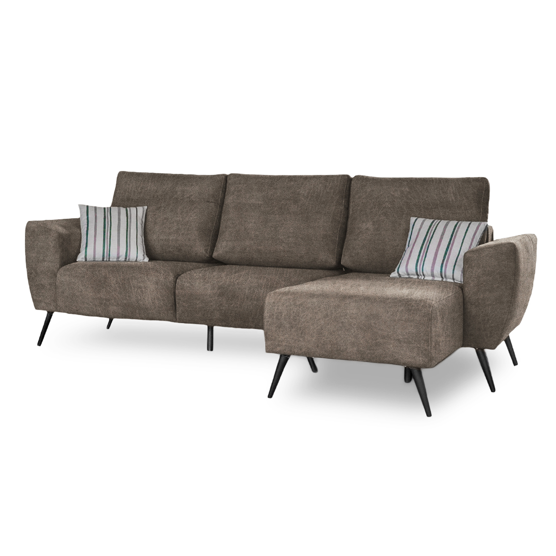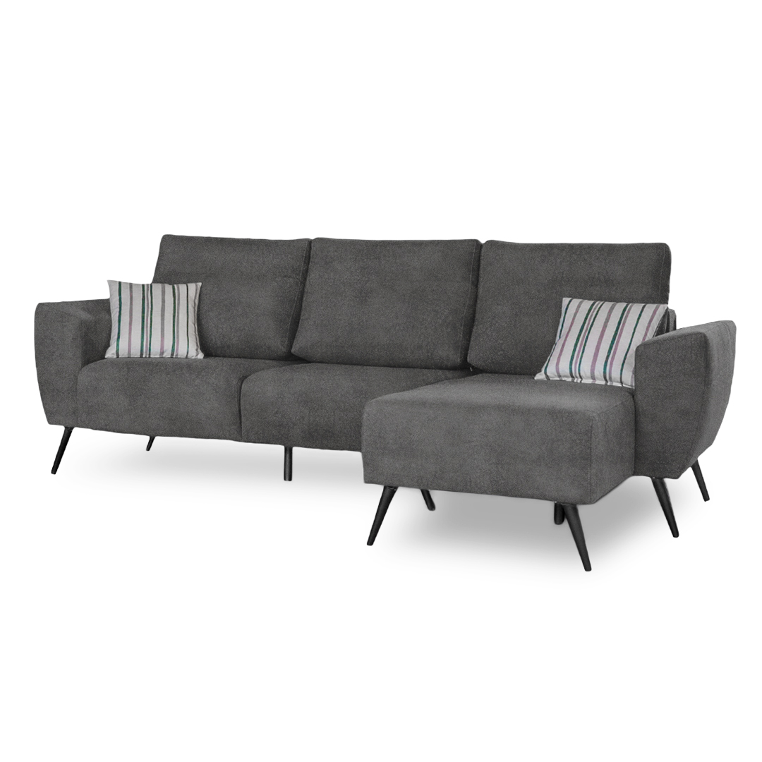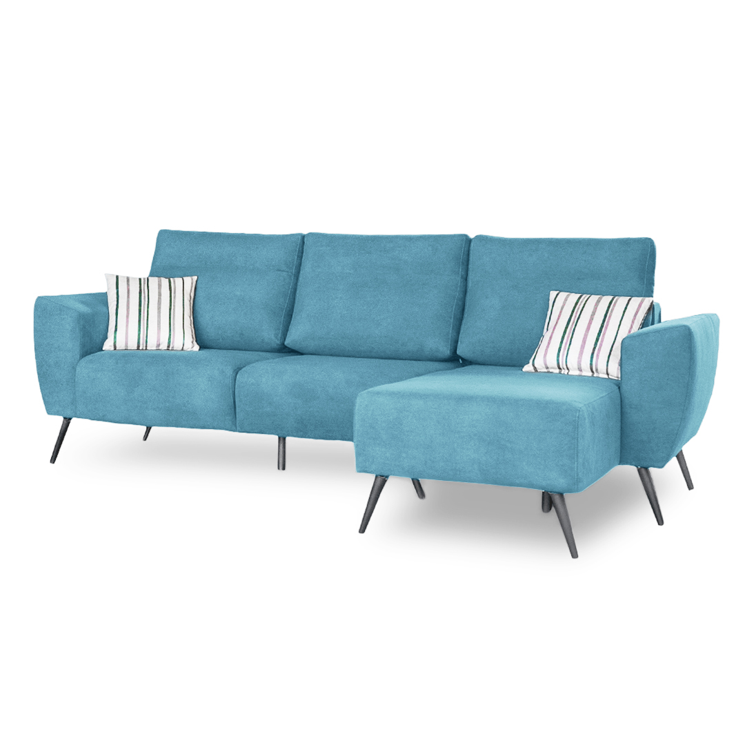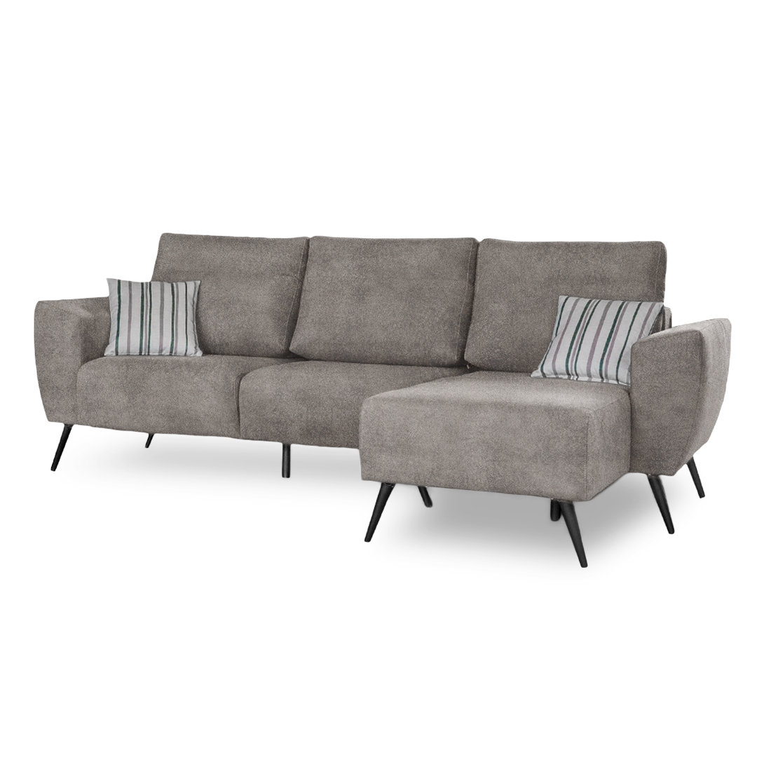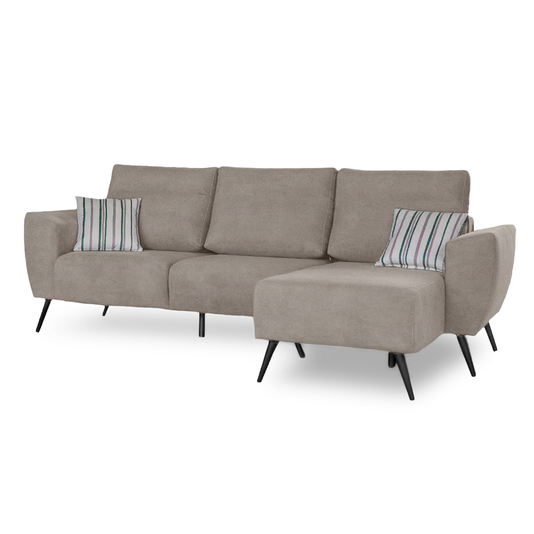 El Sofá Ottilia 2 Cuerpos + chaise longue se destaca por su diseño minimalista y moderno que aporta sofisticación a cualquier espacio. Su efecto visual flotante lo convierte en una pieza única para ambientes contemporáneos.
