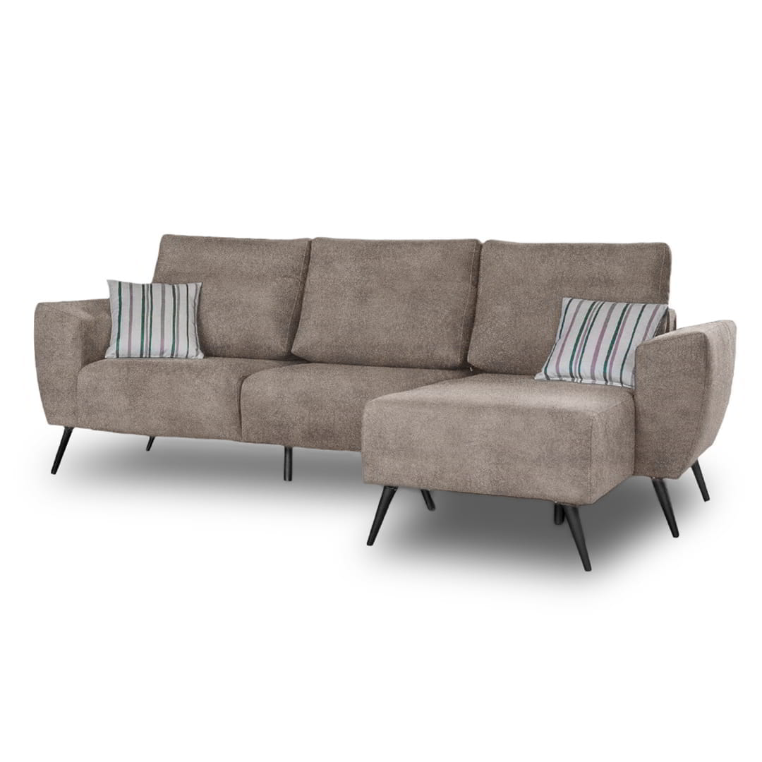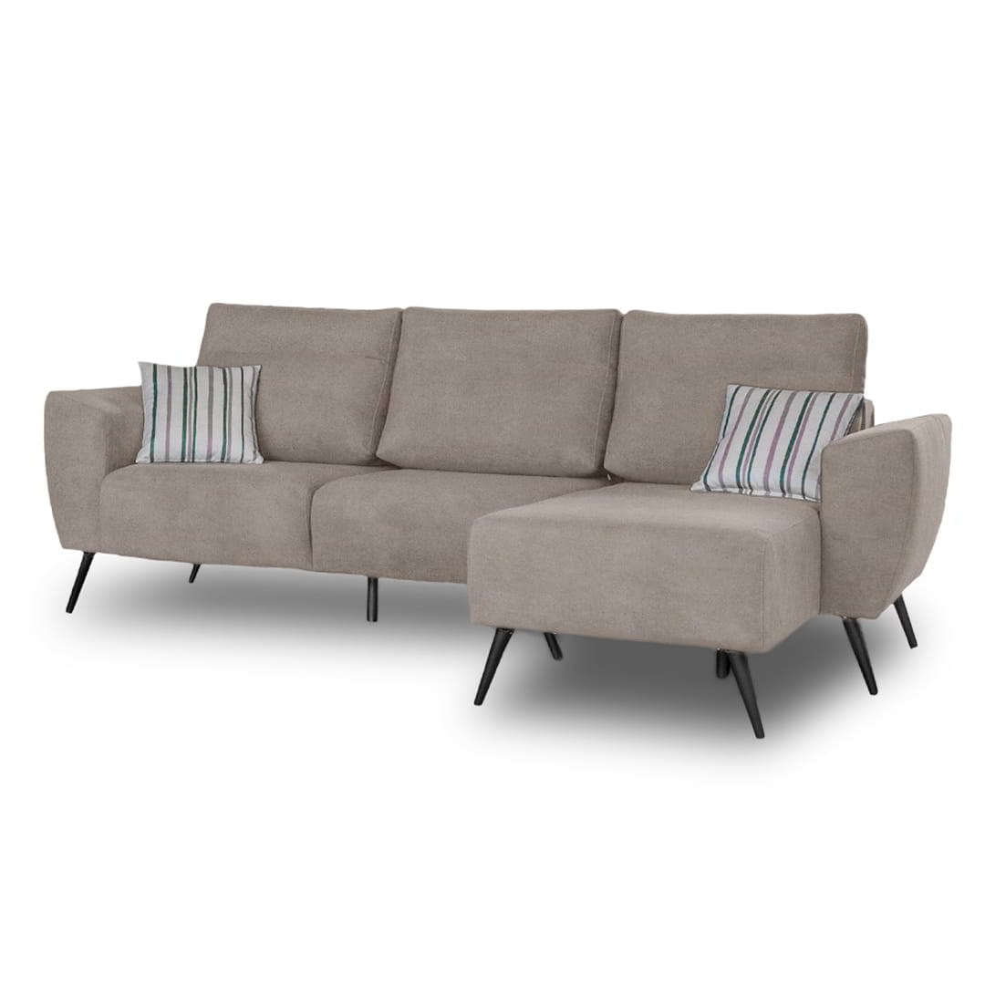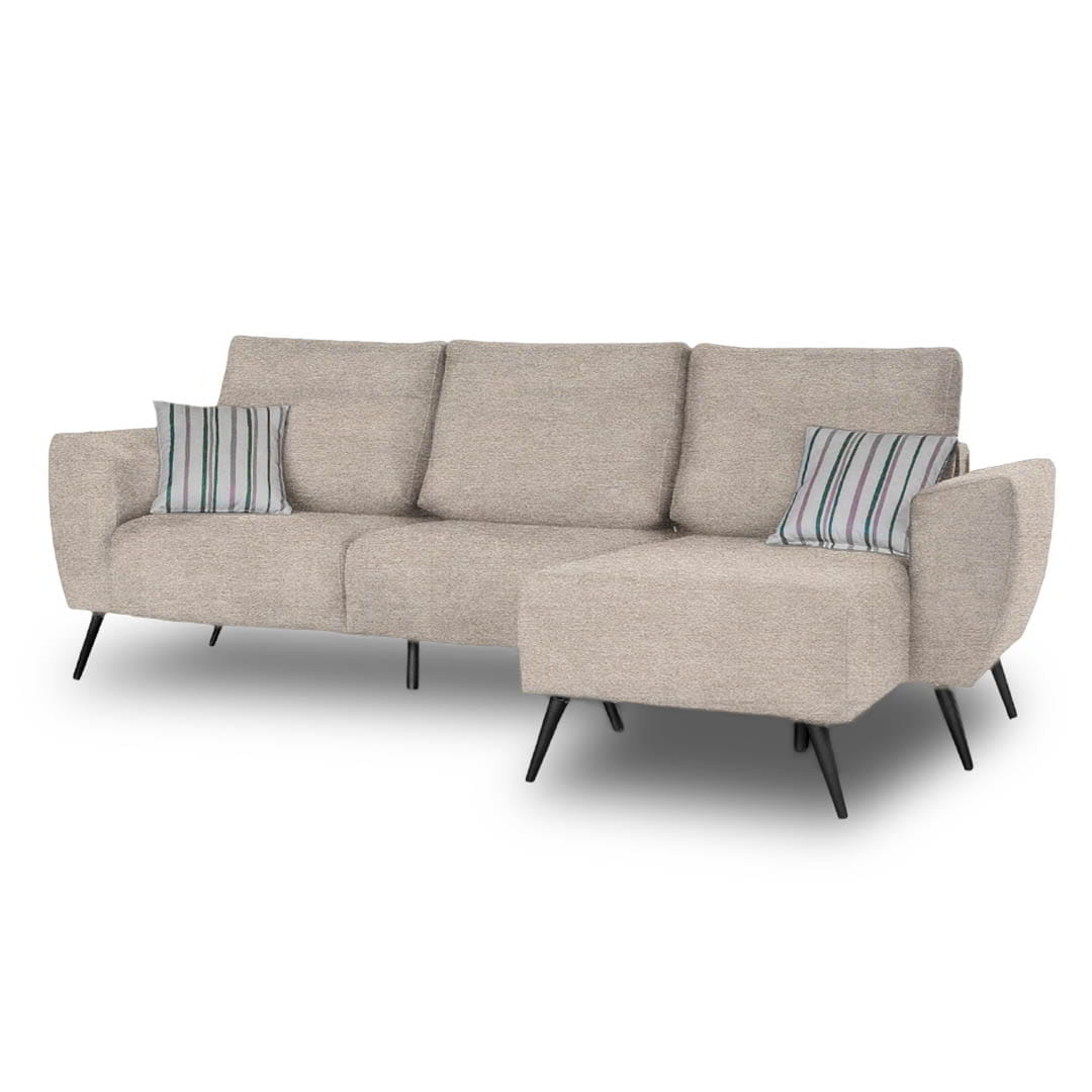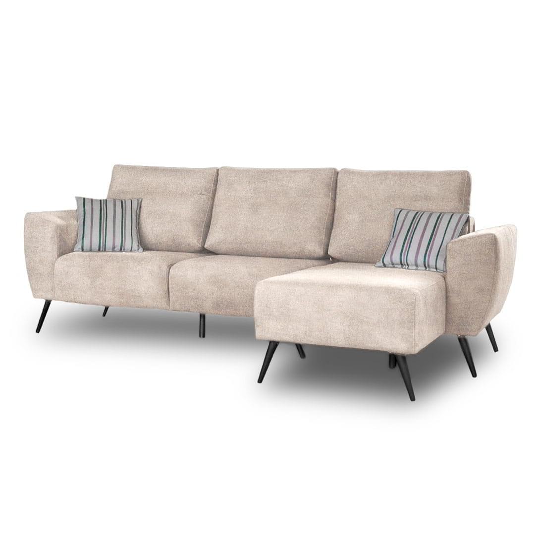 El Sofá Ottilia 3 Cuerpos + chaise longue se destaca por su diseño minimalista y moderno que aporta sofisticación a cualquier espacio. Su efecto visual flotante lo convierte en una pieza única para ambientes contemporáneos.
