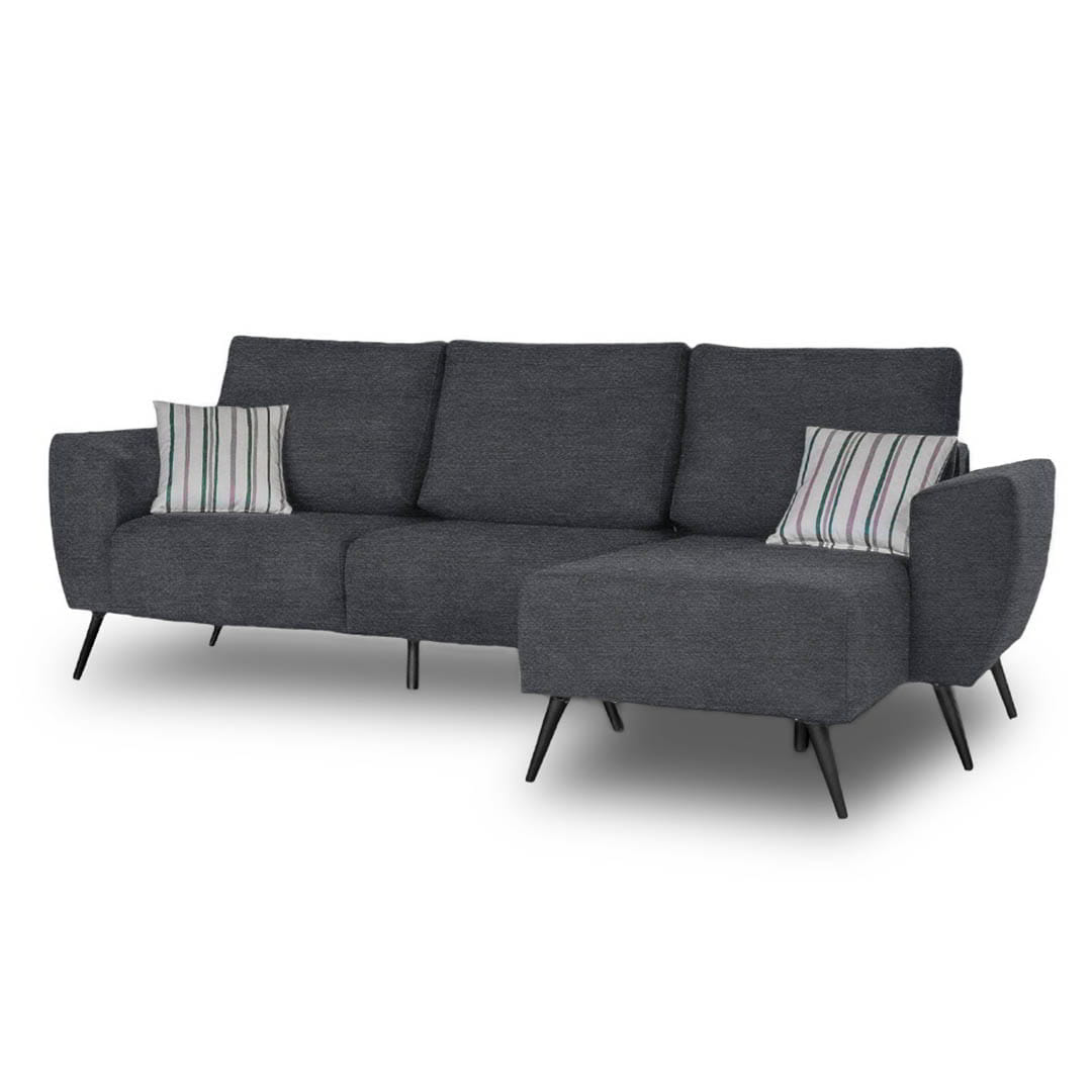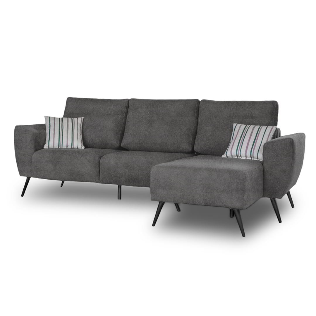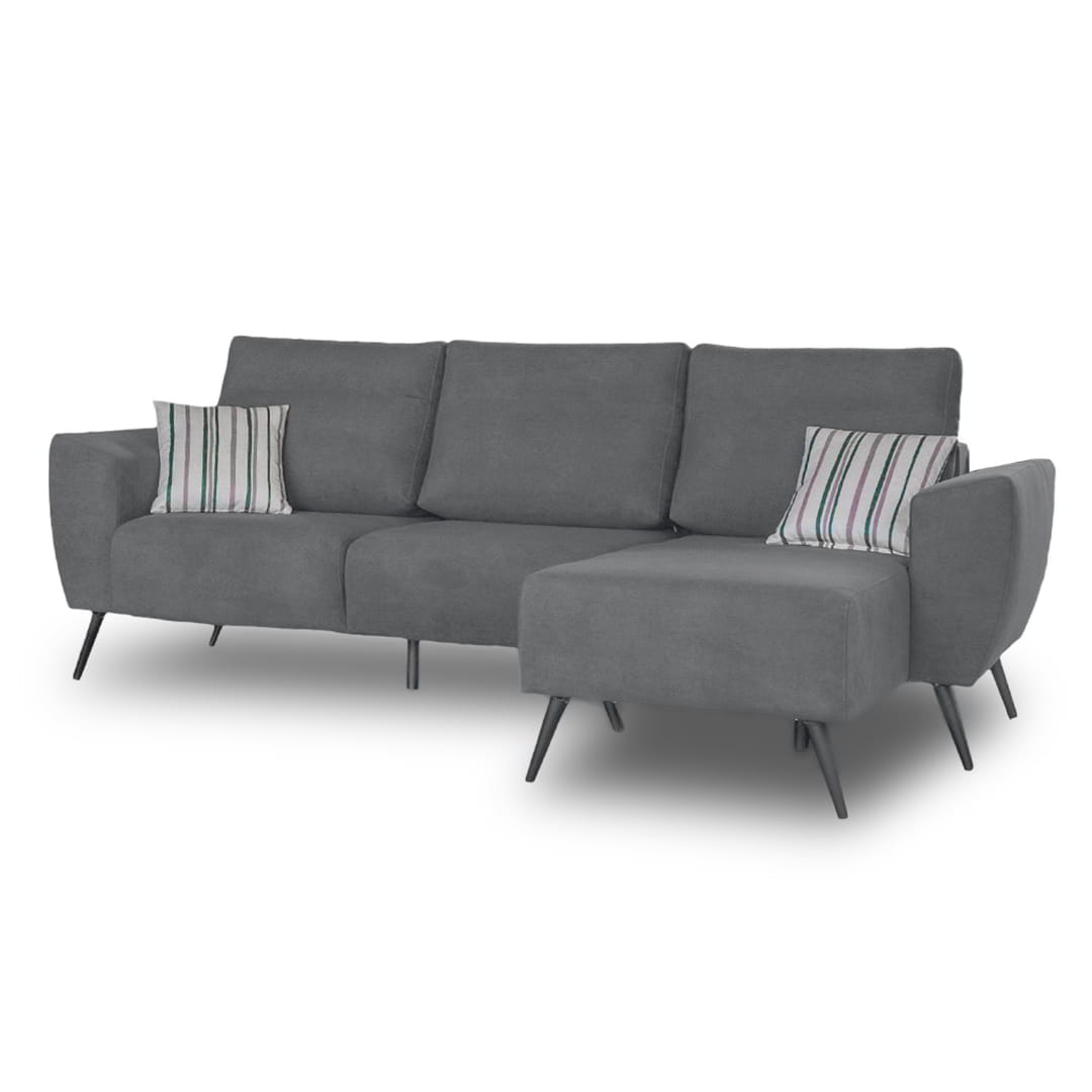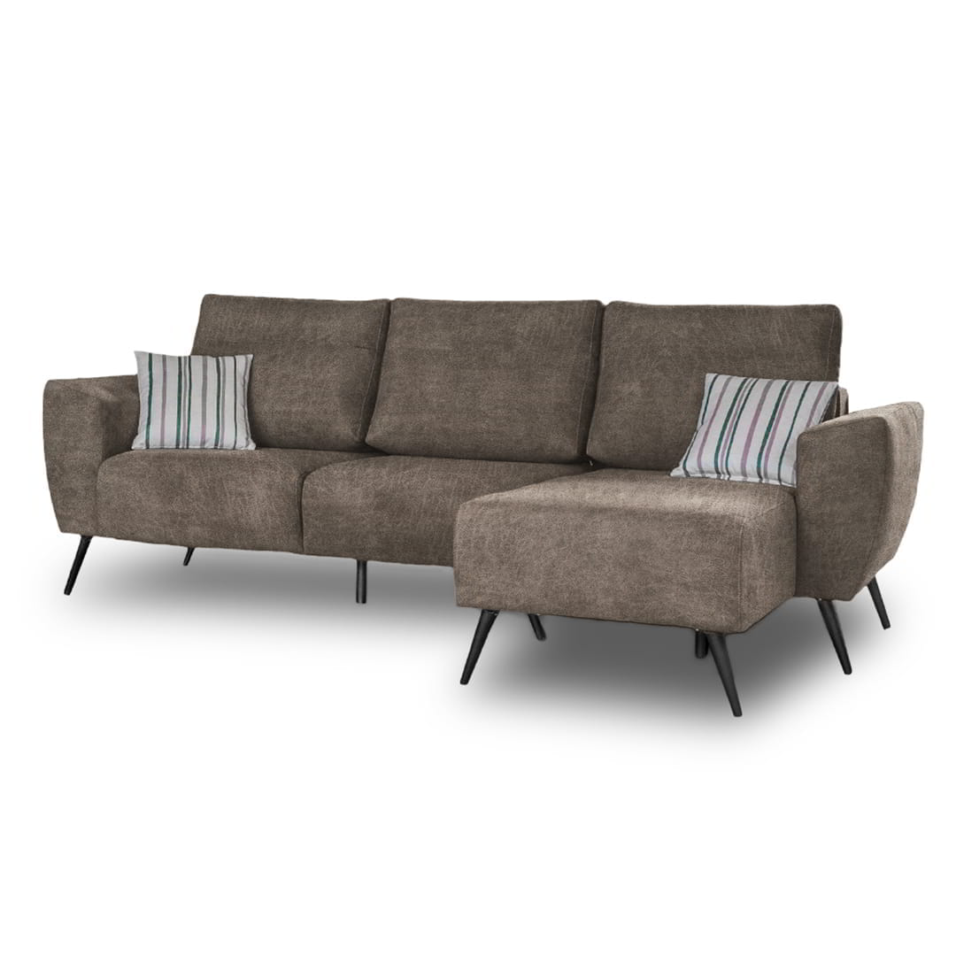 El Sofá Ottilia 3 Cuerpos + chaise longue se destaca por su diseño minimalista y moderno que aporta sofisticación a cualquier espacio. Su efecto visual flotante lo convierte en una pieza única para ambientes contemporáneos.