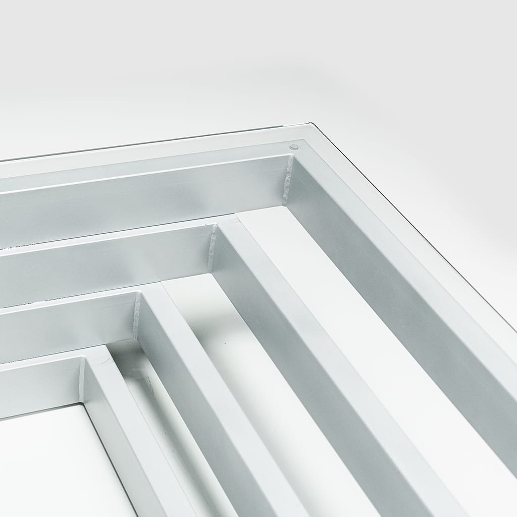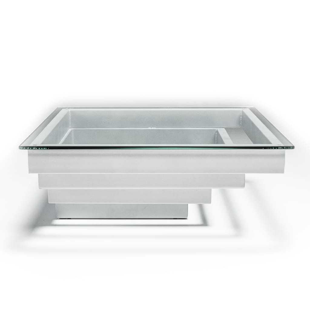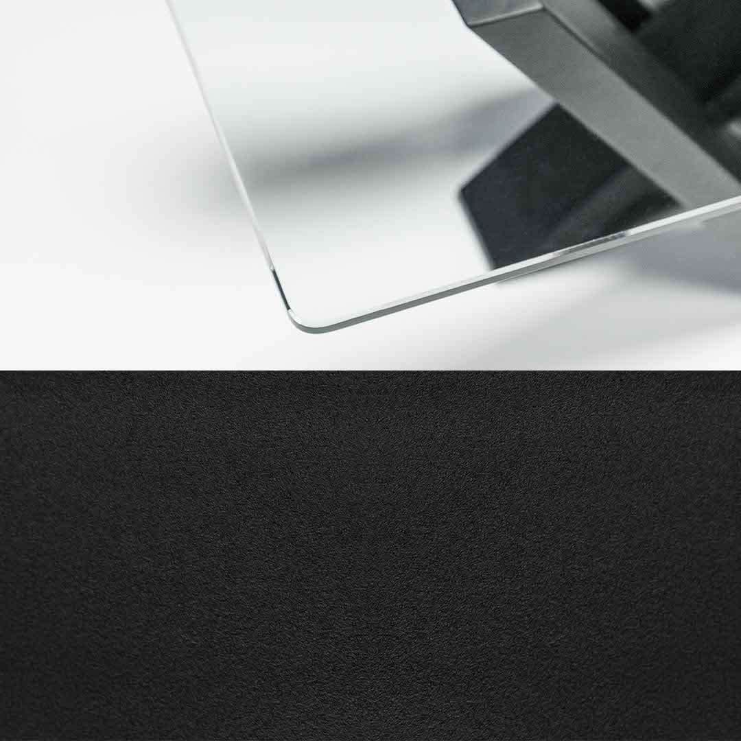 Con un acabado en pintura microtexturada negra o gris, y una superficie de vidrio templado de 75x75 cm, la Mesa Eclipse ofrece durabilidad y estilo en un diseño compacto y elegante.