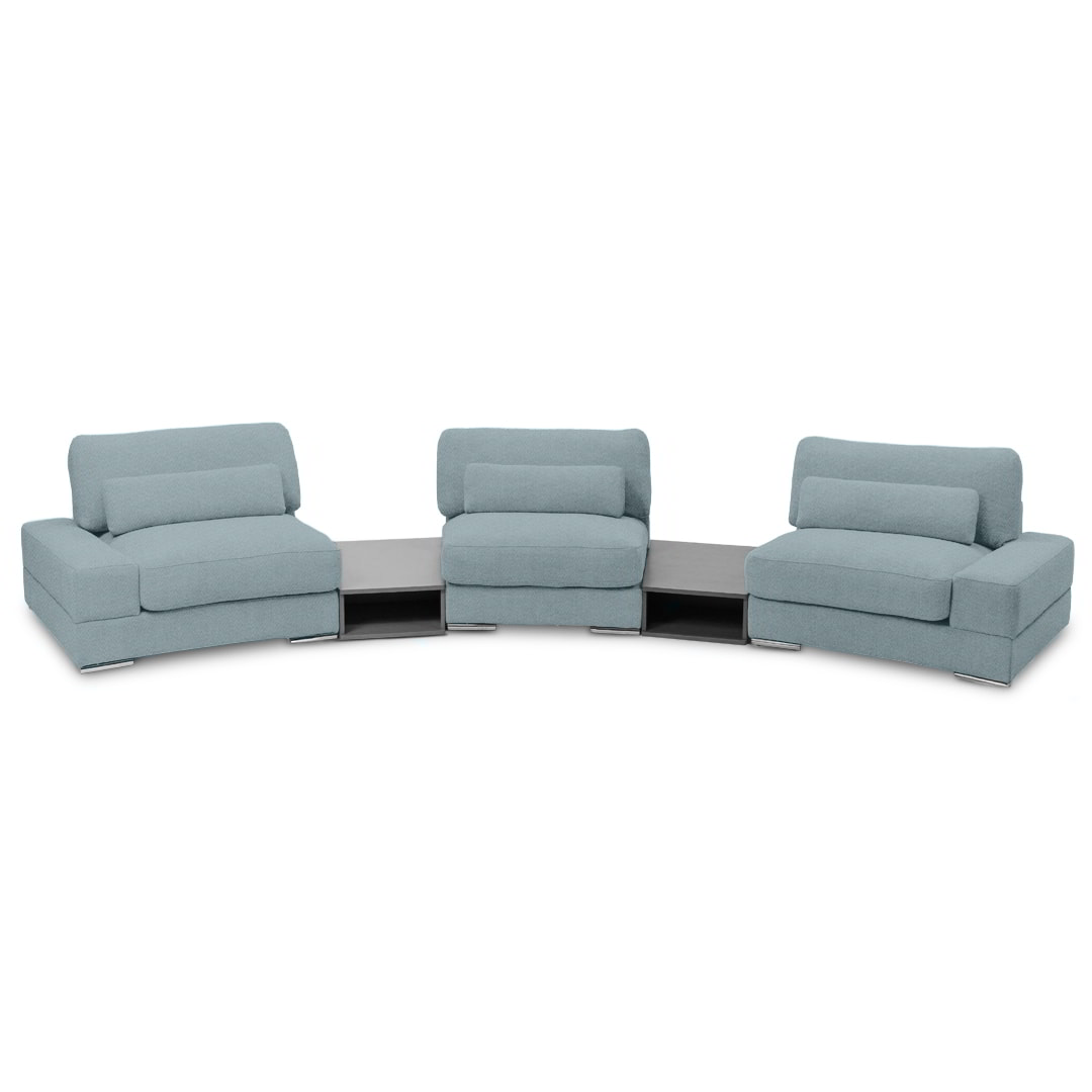 Diseñado bajo un sistema modular, Bianca permite múltiples configuraciones para adaptarse con fluidez a distintos espacios, estilos y necesidades. Está disponible en dos módulos con brazos, un módulo sin brazos y dos sofisticados módulos mesa de melamina de 18mm, lo que favorece tanto su transporte e instalación, como la personalización del ambiente.