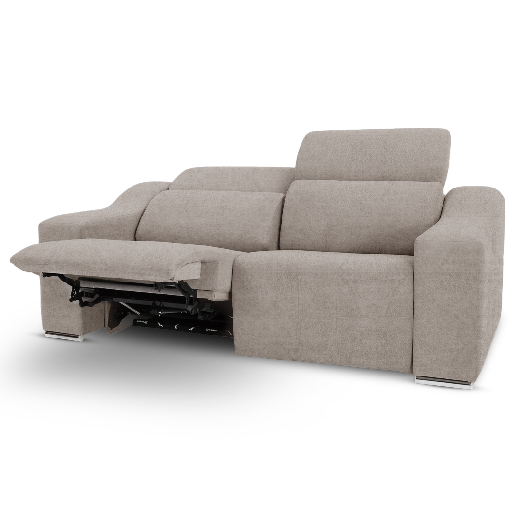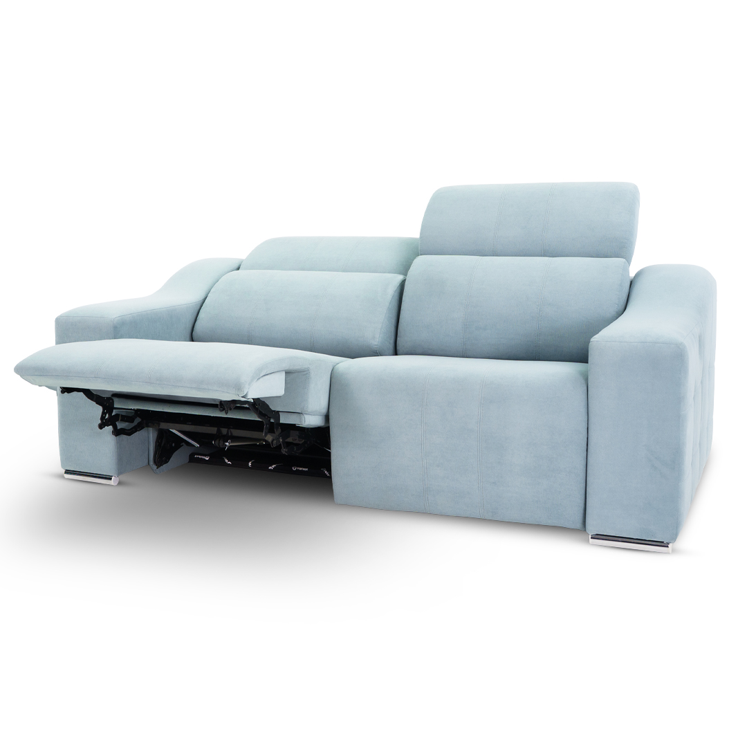 Equipado con tecnologías de gravedad cero, Leyre cuenta con un sistema de elevación de asientos, que permite una transición suave y ergonómica hacia una posición de descanso ideal. Este mecanismo se acciona mediante comandos integrados, accesibles tanto desde el exterior como desde el interior del sofa.