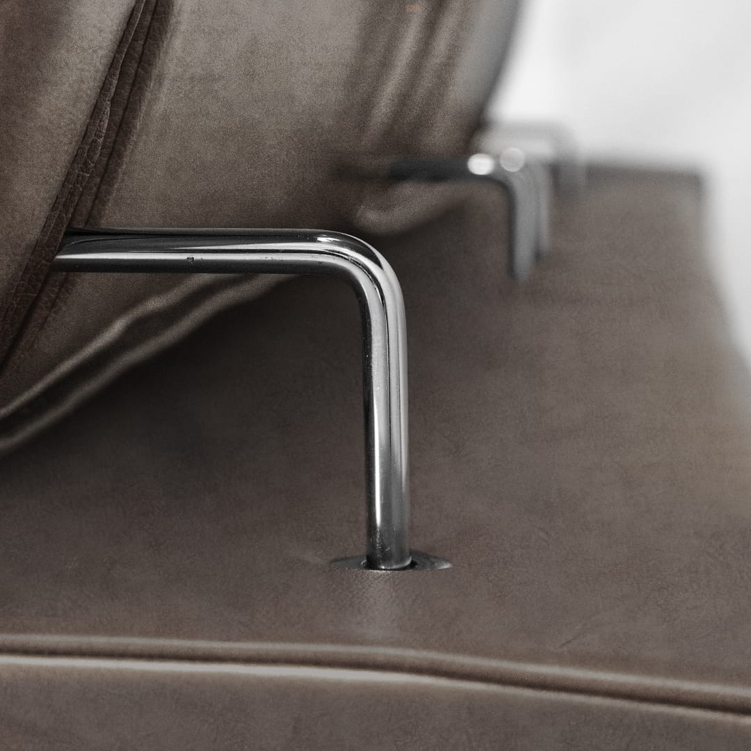 Su diseño contemporáneo se materializa en dos asientos fijos con riñoneras integradas, complementados por cabeceros y apoyabrazos reclinables que se adaptan a tus necesidades de descanso.