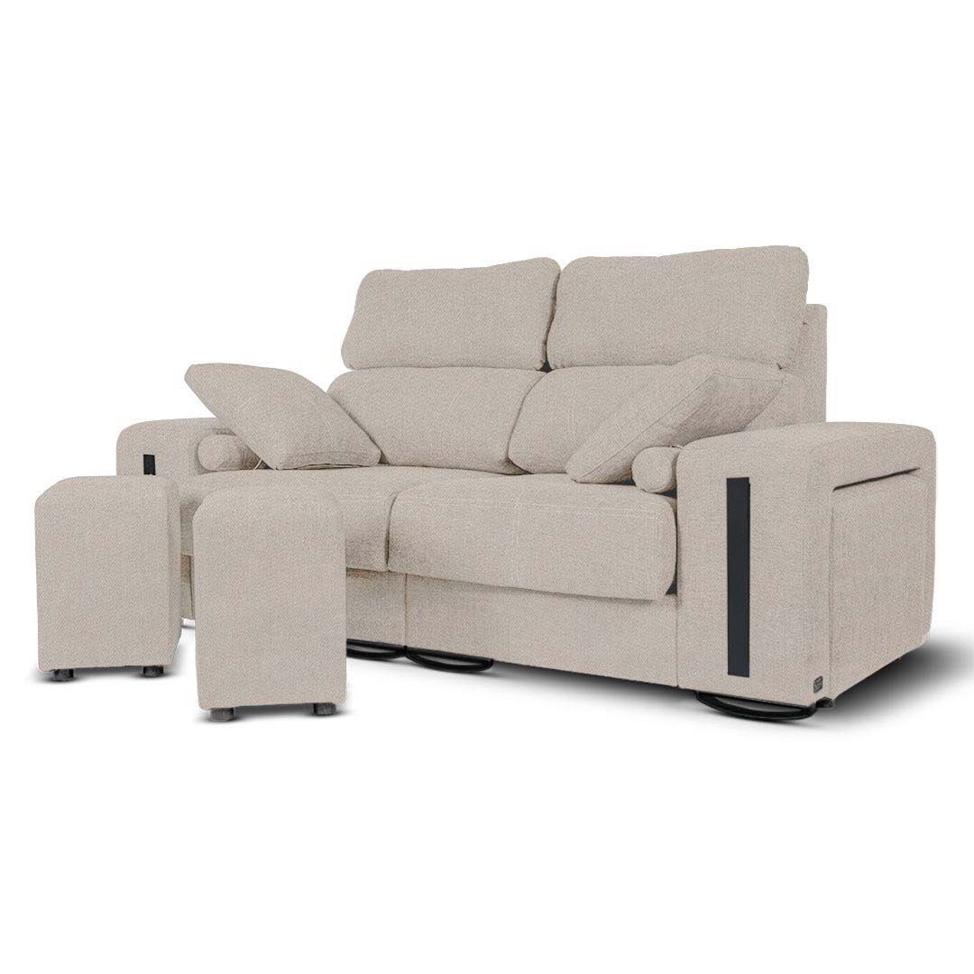 Con el diseño Thiara, ganas un plus de espacio en casa a la hora de recibir visitas, ya que el sofá incluye en su diseño dos taburetes y una banqueta para ampliar tus espacios y ofrecer el máximo confort a todos.